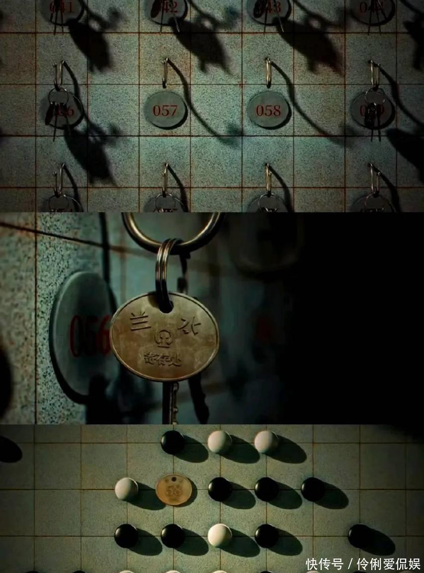 还有他转身时,显示的狱中监号058,恰好也是他第一次行动时存包的号码,以及该剧开头的图片,在棋盘中的一个钥匙牌上的编号也是058。